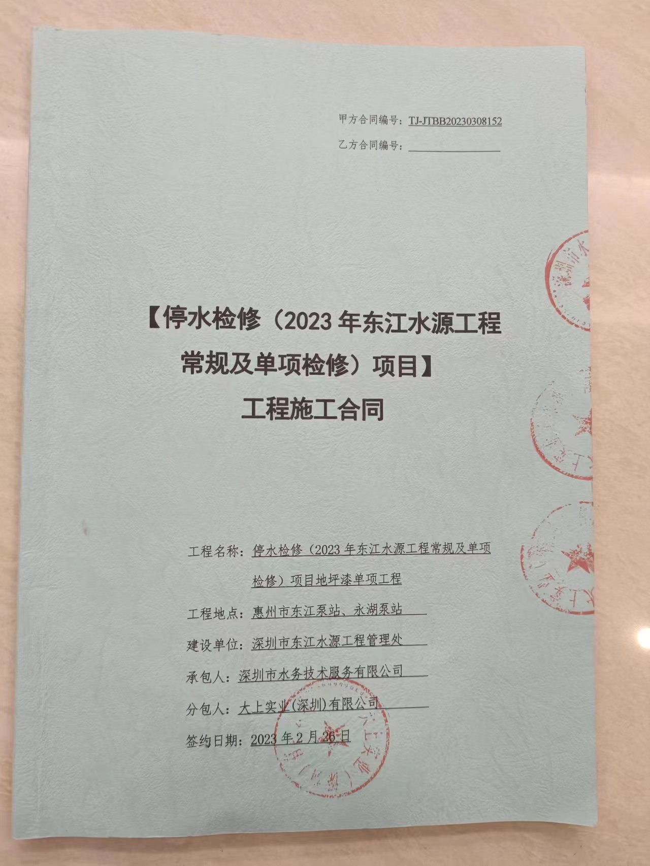 工程名稱:停水檢修(2023年東江水源工程常規(guī)及單項檢修)項目地坪漆單項工程