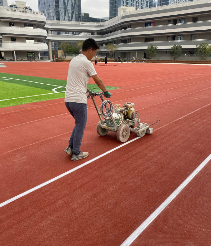 2、在當(dāng)日計(jì)劃鋪設(shè)的跑道線內(nèi),以每卷為長度單位擺好所需的卷材。