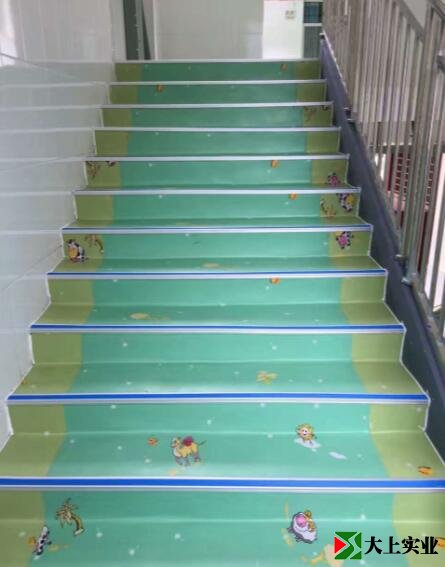 PVC地板可以在幼兒園室內(nèi)任何一個地方使用,教室、房間、餐廳、衛(wèi)生間、走廊、臺階等。臺階PVC配上專用防滑條,對小朋友的安全起到很好的保護(hù)作用。