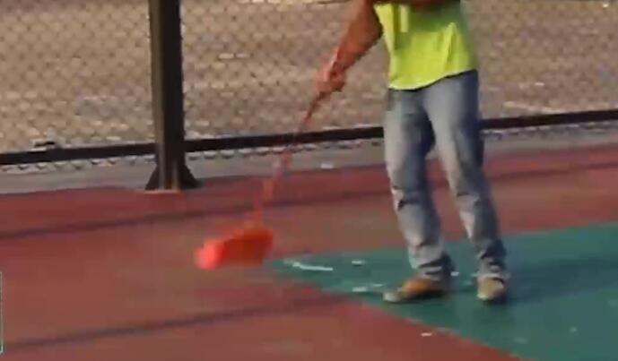 面漆層施工分為:標(biāo)記界線、滾涂、打磨、清掃、修補(bǔ)面層和邊角等;