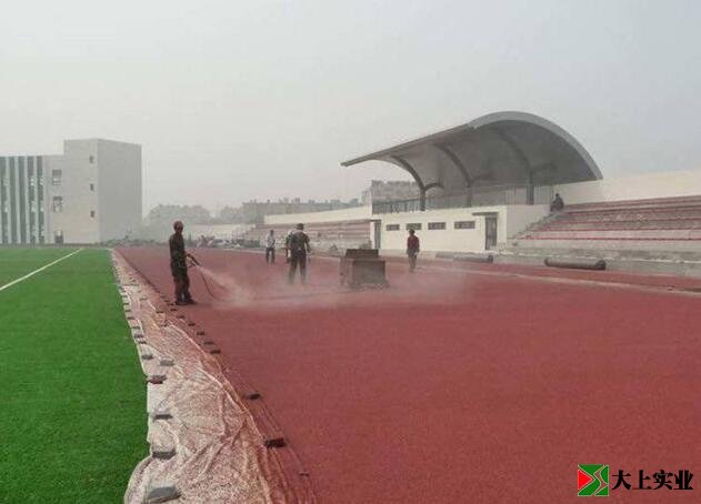 塑膠跑道施工之前必須先做好排水措施,并提前查看天氣預報,準備好防雨篷布,施工過程中突遇下雨時及時將其覆蓋。已經被雨水淋濕導致不能固化的區(qū)域必須鏟除掉,并將鏟除的區(qū)域重新打磨并清理干凈,然后按塑膠跑道施工的工藝流程重頭再來。雖然這樣會造成一定的材料和人工損失,但這是唯一的解決方法,切忌不可將就保留,留下的詬病會使后期損失更嚴重。