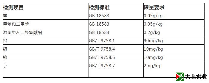 在我國(guó)強(qiáng)制性國(guó)家標(biāo)準(zhǔn)GB 18581一2001及GB 18583—2001《室內(nèi)建筑裝飾裝修材料有害物質(zhì)限量》系列標(biāo)準(zhǔn)中對(duì)聚氨酯類裝修材料中所含TDI的量分別進(jìn)行了規(guī)定,要求小于0.7%和小于1%。此外我國(guó)化工行業(yè)標(biāo)準(zhǔn)HG/T 3608—1999聚酯聚氨酯木器涂料(Polyester Polyurethane coatings for woodenware) 中也規(guī)定了以TDI及多元醇和多元酸的反應(yīng)產(chǎn)物為基料生產(chǎn)的清漆、有色透明漆和瓷漆中的游離TDI含量。