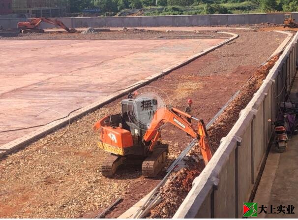 ,目前跑道輪廓清晰可見,已經(jīng)鋪上了石子正在做路面硬化,有挖掘機正在路面上作業(yè)配合周邊管道填埋。