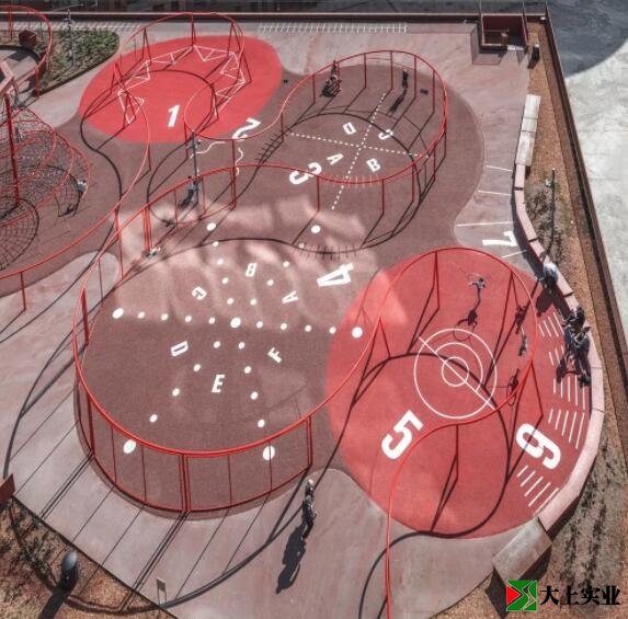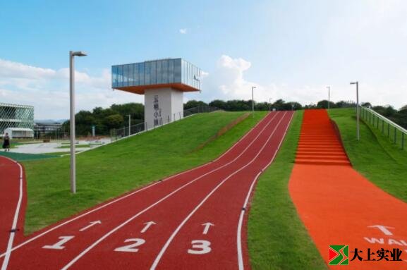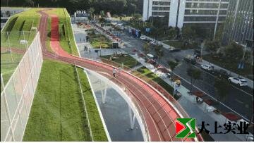 紅色部分是跑道,綠色、橙色屬于慢行道,可以有效地減少相互干擾。整條跑道和以往見過的任何一條操場跑道都不一樣