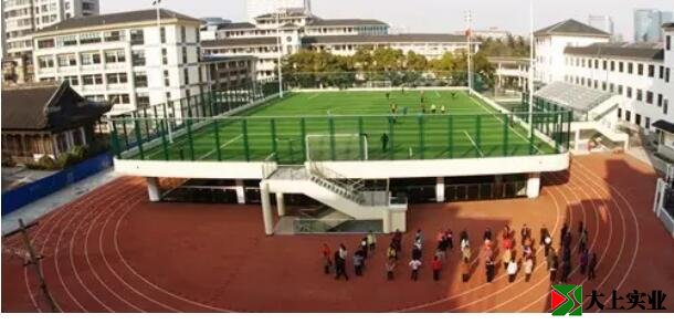 山清水秀的天臺(tái)縣城,若登到高處俯瞰全城,會(huì)看到一個(gè)非常特別的建筑——一幢橢圓形4層樓高的建筑頂部,是一個(gè)200米長(zhǎng)的環(huán)形跑道,還有一個(gè)籃球場(chǎng)。樓頂操場(chǎng),有3重防護(hù),最外層是1米8高的強(qiáng)化玻璃防護(hù)墻,然后是一圈綠化隔離帶,第三道防護(hù)是1.2米高的不銹鋼防護(hù)欄。有了這三道防護(hù),可以避免學(xué)生攀爬引發(fā)的意外。
