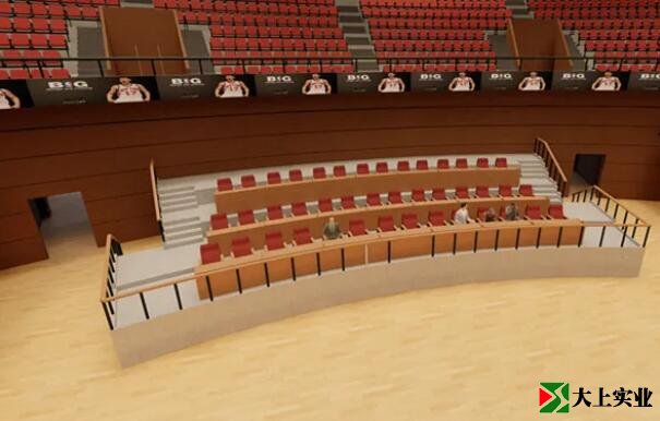 體育場(chǎng)館的主席臺(tái)規(guī)模為坐席數(shù)的0.5%-2%,其中首排應(yīng)考慮安放長(zhǎng)條式主席桌、可移動(dòng)帶扶手靠背椅及講話席,排距不小于2m。