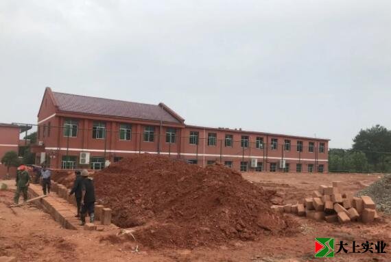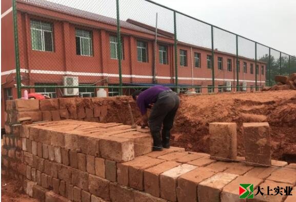 6月7日,運動場入口處的圍墻正在施工中