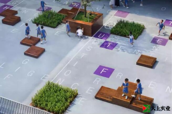 豐富原有設(shè)備單一的功能,讓生活中平淡的硬性景觀擁有新功能,例如可以戲水的步行臺(tái)階,可以攀爬娛樂的籃球架等。不僅增加了空間的層次感,使得空間中的元素更加豐富,使得學(xué)校氛圍更加生動(dòng)活潑,讓孩子們有了更多的可玩性,衍生出更多的交互方式。