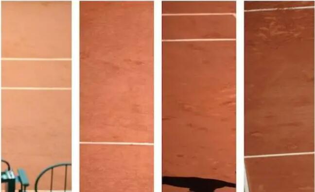 在同一片場(chǎng)地上,在晴朗、干燥的天氣下打球,球落地后球速相對(duì)快且彈跳高;在多云、潮濕的天氣中,球落地后的速度相對(duì)慢且彈跳低。在不同光照強(qiáng)度下,紅土場(chǎng)地會(huì)在照片中呈現(xiàn)不同色彩。