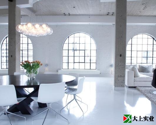在起居室和就餐區(qū)使用明亮的環(huán)氧地坪漆