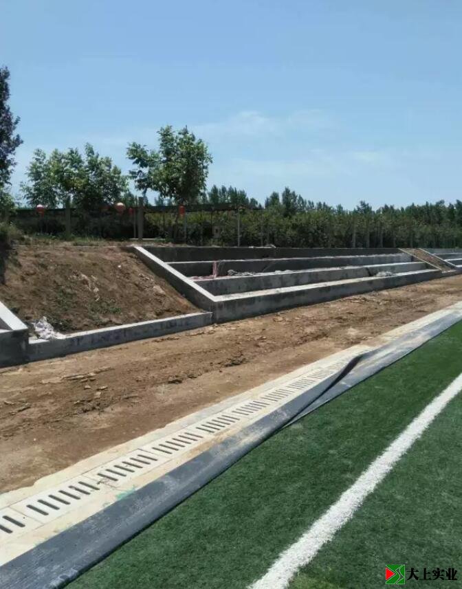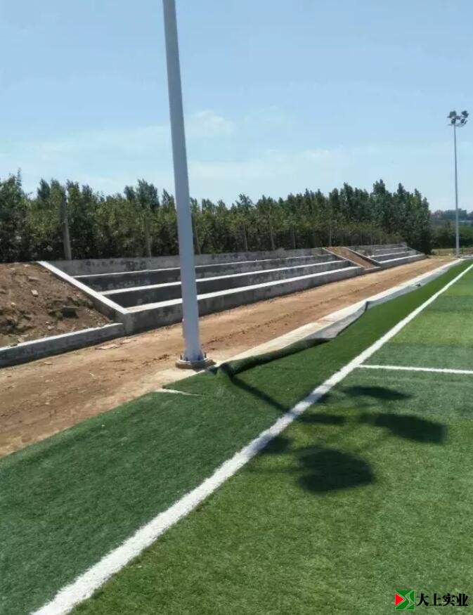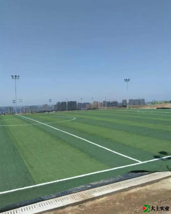 于是,我跳下臺階,步入這草色深淺不一的綠茵足球場。這才發(fā)現(xiàn)草坪是人造草鋪成,但不仔細觀看,是難辨真假的。