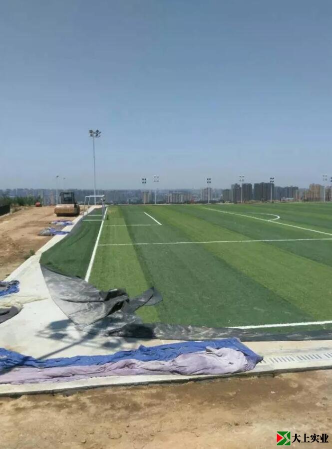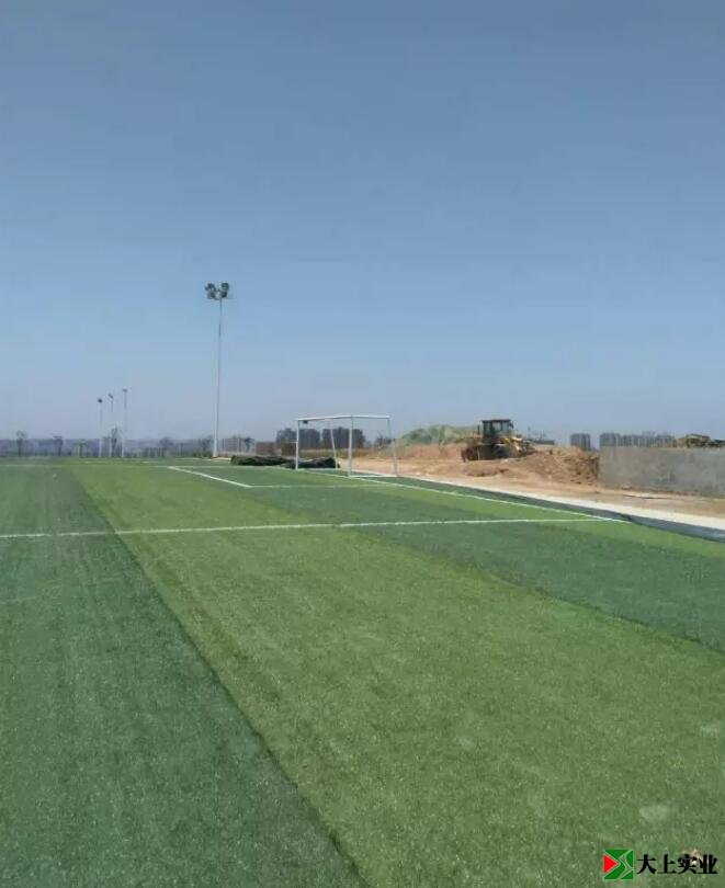 再看,足球場的兩個白色大門格外醒目,而球門線、禁區(qū)線、中圈線及端線、邊線,也都標劃得清清楚楚,要不是看到場外還停放的壓路機,真讓人誤以為來到賽場。